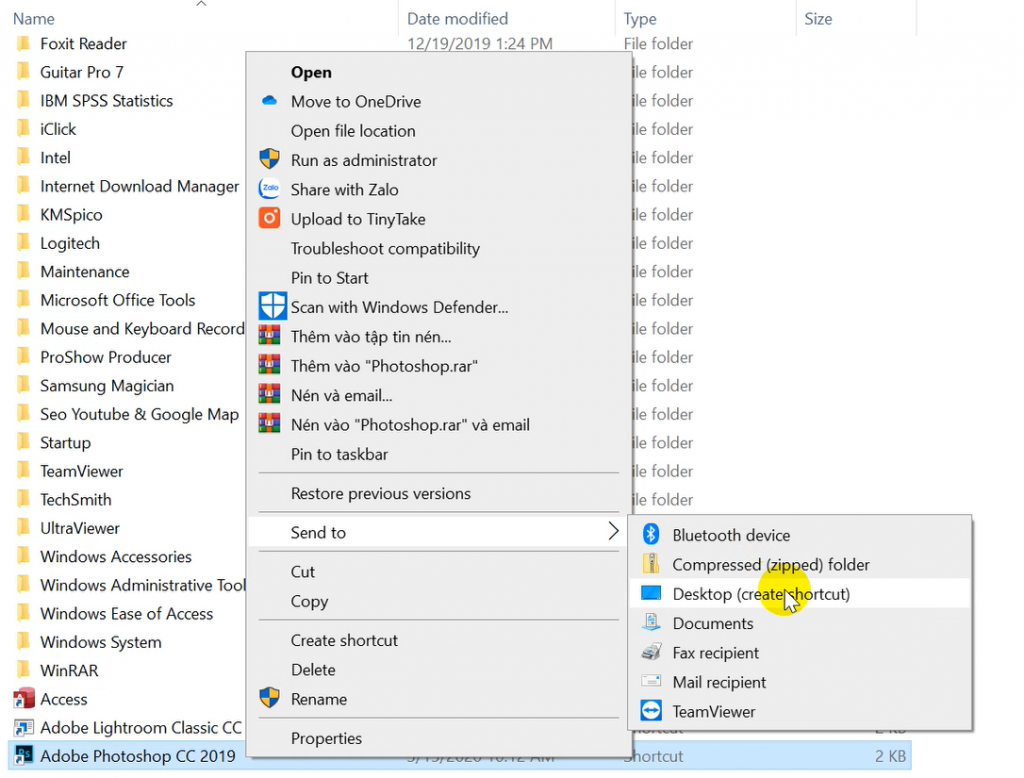 Sau đó, để đưa ra ngoài màn hình thì bạn chỉ cần click chuột phải vào thư mục và chọn Send to, sau đó chọn Desktop là xong ngay